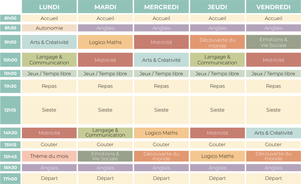 Notre approche s’appuie sur des thèmes d’apprentissage soigneusement construits pour accompagner les tout-petits vers les compétences attendues pour leur entrée à l’école.