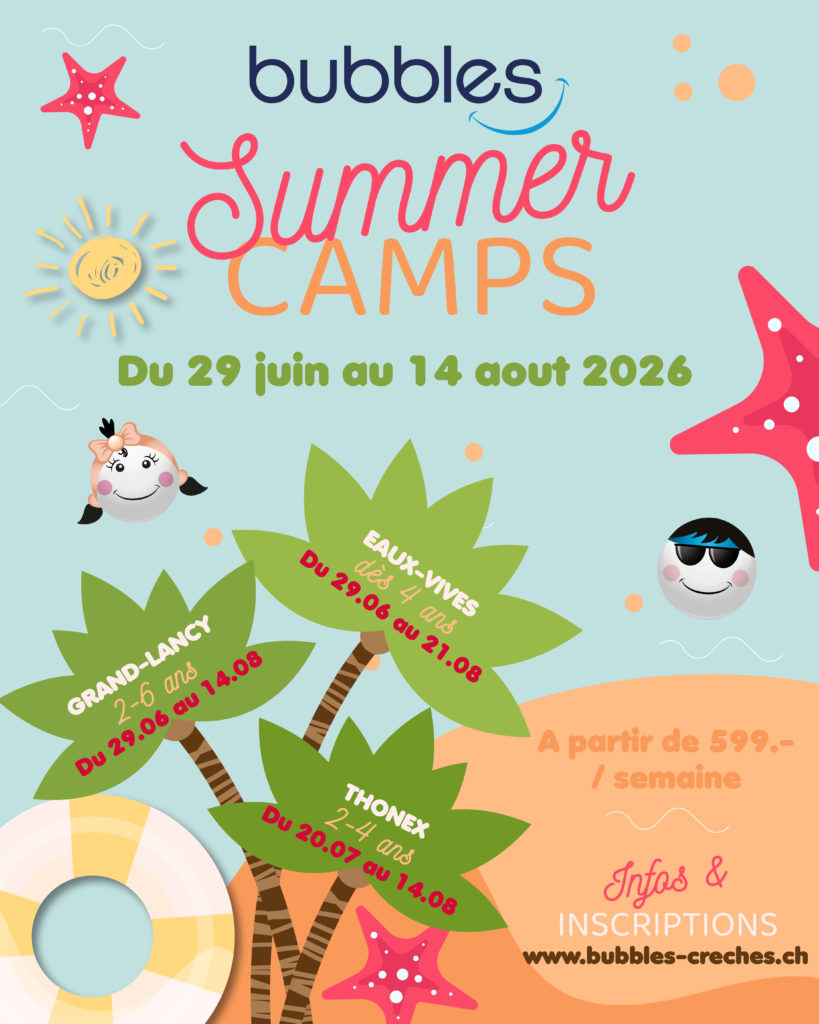Du 29 juin au 28 août 2026 (Bubbles Kids Club Eaux-Vives)